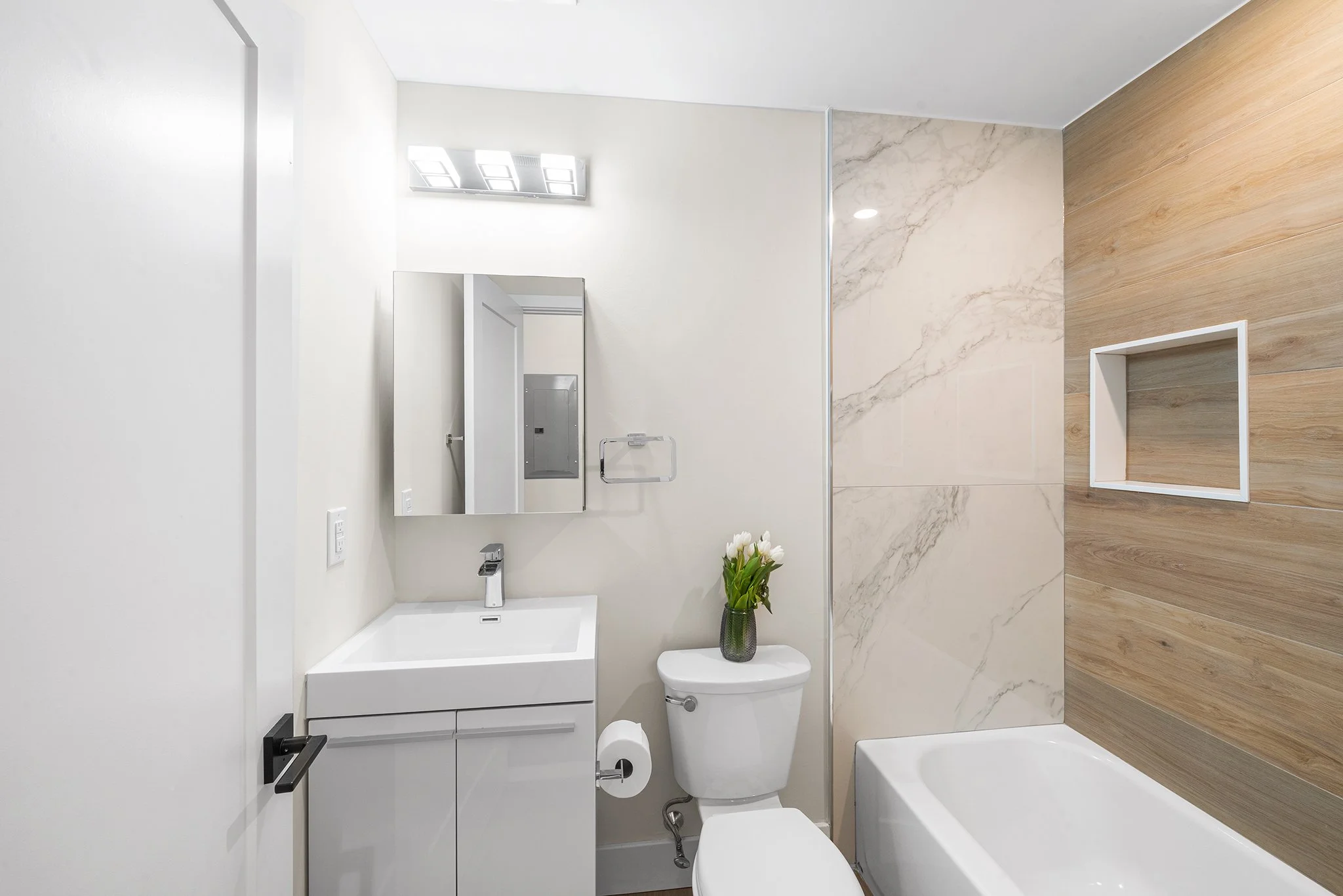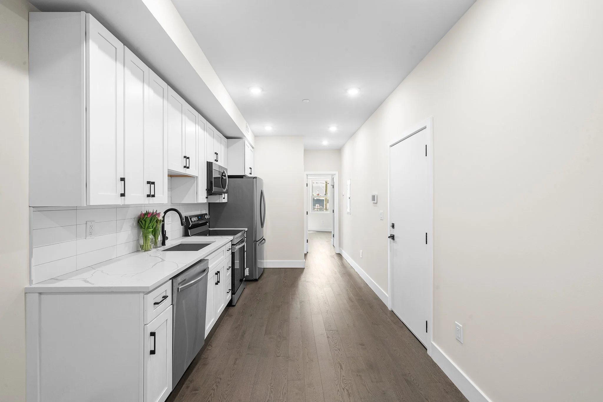 Each light-filled unit includes sleek cabinetry, recessed lighting, stainless steel appliances, a washer and dryer, security system, smart thermostat, abundant storage, and outdoor space.